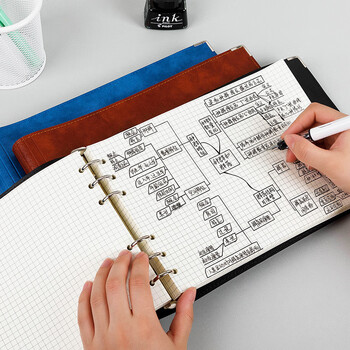 法拉蒙 A4大号康奈尔思维导图本皮面活页笔记本子可拆卸大学生考研方格记事本加厚读书笔记 A4黑色(横线)
