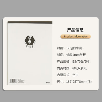 晨光(M&G)文具5本B5/70页空白演算草稿本 学生考研考试加厚草稿纸办公记事图画本 米黄色纸张GB5761