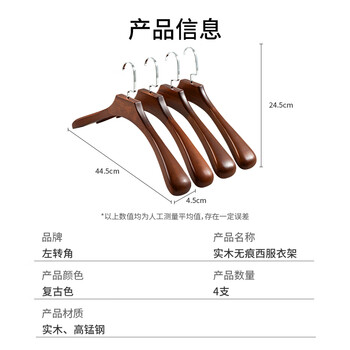 左转角实木衣架木质西装服大衣架挂衣服宽肩无痕衣服挂高档衣撑子复古色