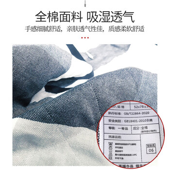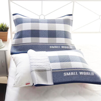艾薇纯棉枕巾一个儿童加大三层纱布夹棉枕芯枕头巾 蓝色格子 52*78cm