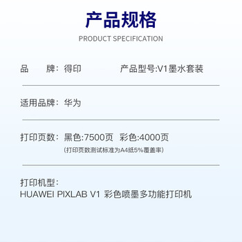 得印适用华为PixlabV1打印机墨水 华为V1彩色打印机墨盒 臻彩打印机墨水瓶 huawei PixLab 四色套装
