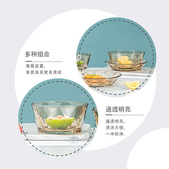 斯帝森(SIDISEN)热玻璃碗加厚水果沙拉碗透明碗家用汤碗泡面冷面碗-山水之间四件套