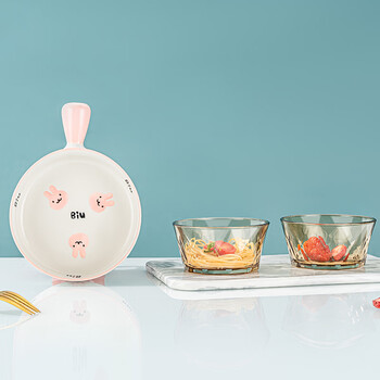 斯帝森(SIDISEN)高硼硅玻璃碗 耐热玻璃碗 透明家用汤碗泡面碗 山水之间三件套A