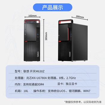 联想国产化信创台式机 开天M630Z 兆芯KX-U6780A/8G/512G/2G/单主机 试用版麒麟 统信支持win/定制