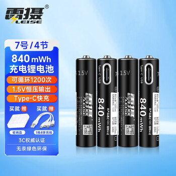 雷摄(LEISE)充电电池 7号/Type-C充电锂电池840mWh(4节)盒装 1.5V恒压大容量 适用:玩具/无线鼠标/遥控器等