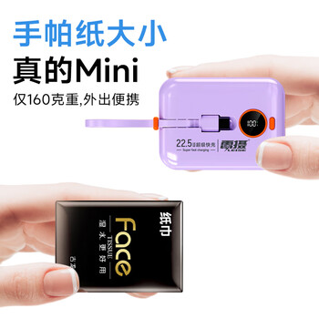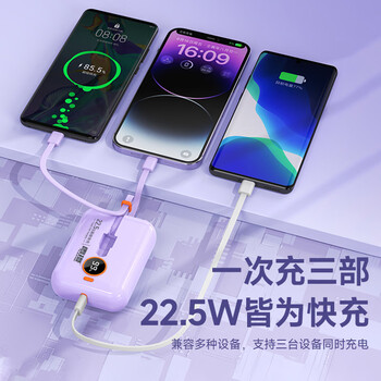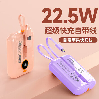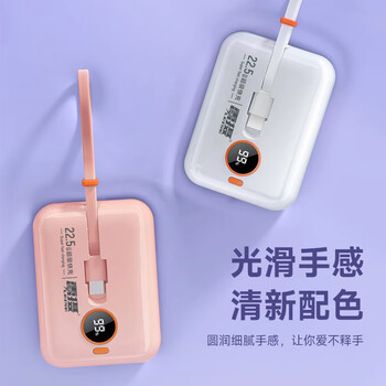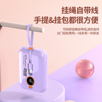 雷摄(LEISE)【3C认证】充电宝10000毫安 22.5W快充自带线便携可上飞机移动电源适用华为苹果小米手机 KP19白色