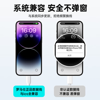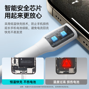 罗马仕苹果数据线PD30/20W快充线Type-c to Lightning充电线适用iPhone14Pro Max/13/12/11手机ipad车载