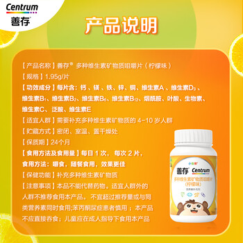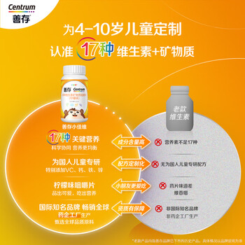 善存儿童多种复合维生素补vd3+钙铁锌4-10岁b族维e维c80片