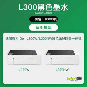 得印 L300NW墨水墨盒 得力1K墨水瓶黑色 适用得力Deli L300W L300NW喷墨打印机墨盒墨水