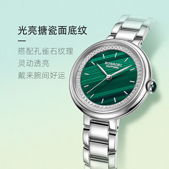 罗西尼(ROSSINI)手表女石英表绿盘钢带生日礼物送女友国表气质防水小绿表 5220130