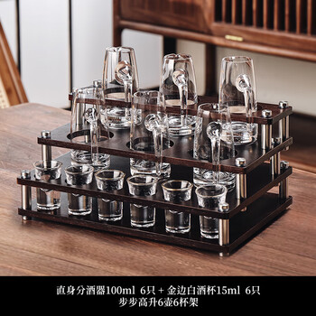 格娜斯白酒杯分酒器套装家用酒具二两杯分酒壶玻璃烈酒杯收纳架10壶10杯