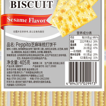 peppito芝麻味苏打饼干405g碱性孕妇充饥饱腹梳打0反式脂肪节日休闲零食