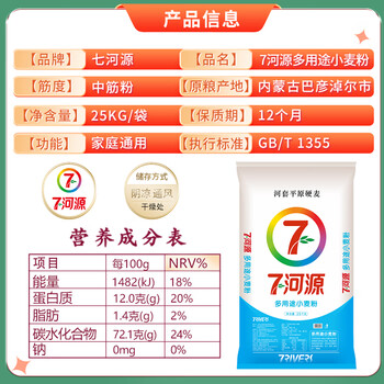 七河源内蒙多用途小麦粉50斤 内蒙古份 家庭餐饮通用面粉 含有内袋