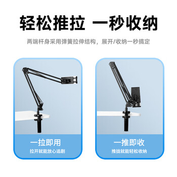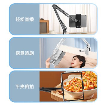 毕亚兹【超稳固不下坠】手机平板电脑支架 ipad网课懒人直播 床头上悬臂桌面俯拍支撑折叠架SwitchB57黑
