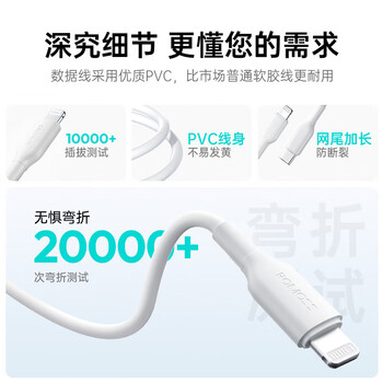 罗马仕 苹果数据线Type-c充电线PD快充20W充电器线适用iPhone14/13ProMax/12/11/Xs/8P手机短线0.3米