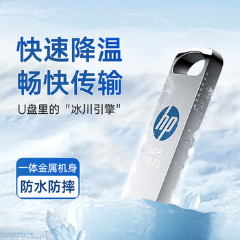 惠普64GB USB 3.2 Gen 1 U盘 x306w 金属高速u盘 读速新升级230MB/s 学习办公车载电脑大容量优盘
