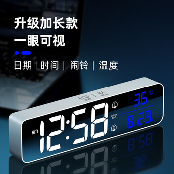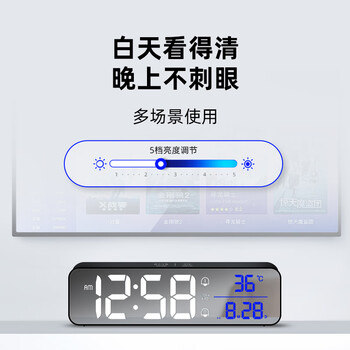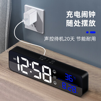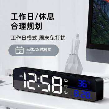 码仕闹钟LED电子音乐超大声夜光多功能客厅可挂大尺寸台钟PLUS版白色开学季礼物