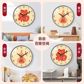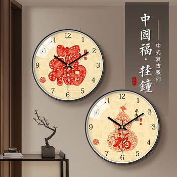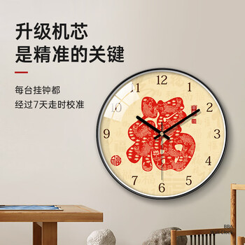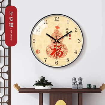 BBA 挂钟新中式客厅钟表家用时钟中国风装饰墙石英钟平安福30cm