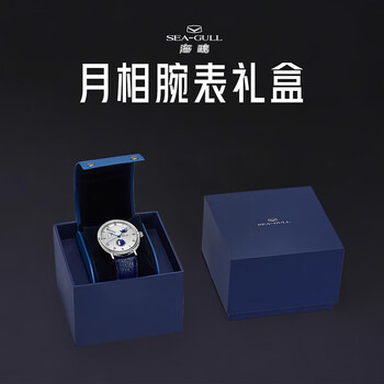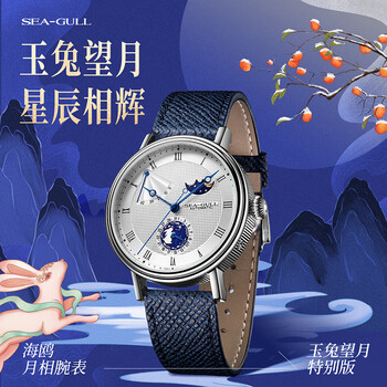 海鸥(SEAGULL)手表男士自动机械表 玉兔望月月相腕表礼盒男士手表生日礼物6092C