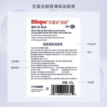 百蕾适薄荷防晒润唇膏SPF15 保湿薄荷 唇部防晒1支装4.25g