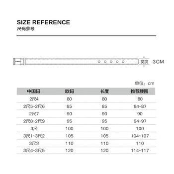 单品腰带包装清单:腰带*1、腰带环*2、防尘袋*1、腰带包装盒*2(一经损坏概不退换)、京东防伪签*1(一经摘除、概不退换)