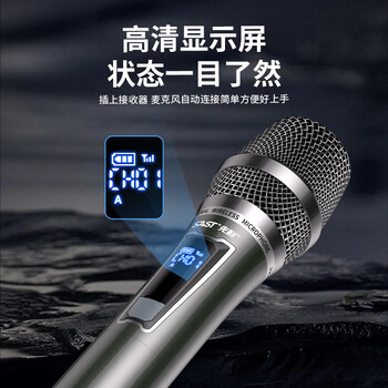 先科(SAST)OK-125充电万能无线麦克风家庭K歌舞台主持演讲会议适用山水飞利浦音箱功放调频一拖二金属话筒