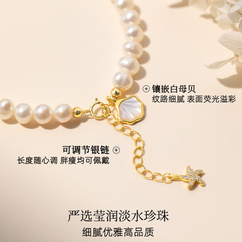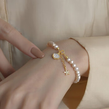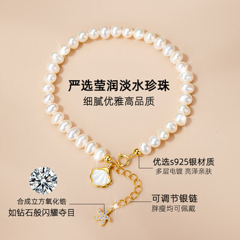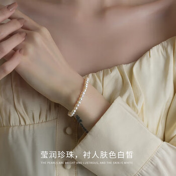 Qlady一贝子淡水珍珠银手链女轻奢高端高级感银饰真品珍珠手串生日礼物