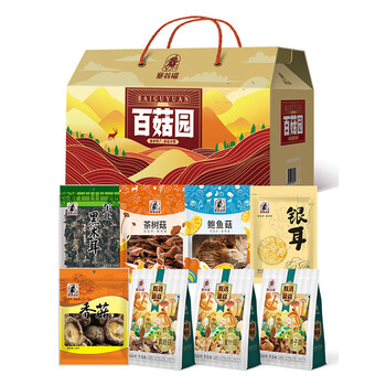塞翁福百菇园菌菇礼盒836克 干货送礼蘑鲍鱼菇茶树菇木耳银耳真姬菇