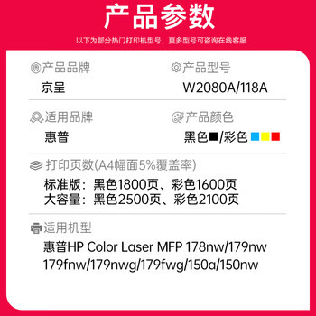 京呈适用惠普HP118A硒鼓 W2080A打印机 MFP178nw 179nw/179nwg/179fwg/179fnw 墨盒粉盒M150a/150nw/150w碳粉