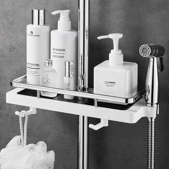 茨格曼 浴室花洒置物架淋浴花洒杆置物架洗手间厕所置物架免打孔托盘
