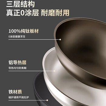 康巴赫炒锅无涂层纯钛不粘锅炒菜锅32cm家用平底煎炒锅电磁炉燃气灶通用