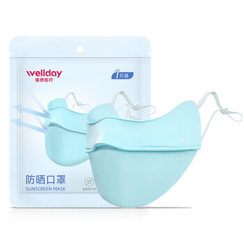 维德(WELLDAY)防晒口罩防晒面罩冰丝凉感护眼角UPF50+蓝色海岛