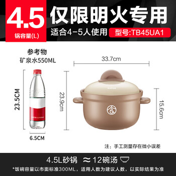 苏泊尔(SUPOR)陶瓷煲家用煲汤砂锅大容量深汤炖煲耐高温不开裂4.5L