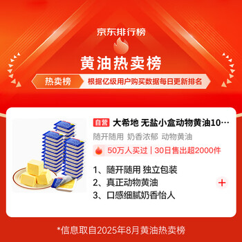 大希地 无盐小盒动物黄油10g*30盒 国产 家用早餐烘焙原料 煎牛排搭档