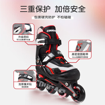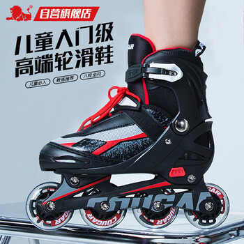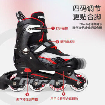 美洲狮(COUGAR)儿童全闪溜冰鞋半软休闲轮滑鞋 黑红M码