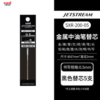uni三菱 圆珠笔芯SXR-200 圆珠笔替芯(适用于SXE3-3000圆珠笔)0.5mm黑色 5支/袋