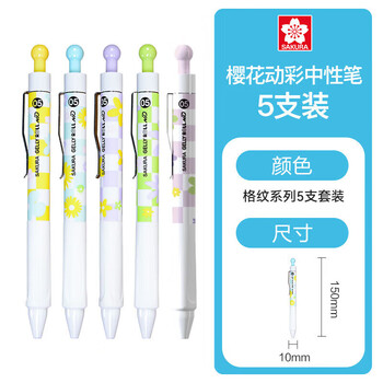 樱花(SAKURA)动彩按动式针头中性笔0.5mm办公签字笔学生考试水笔水性笔耐光耐水耐热动彩笔-格纹系列5支套装
