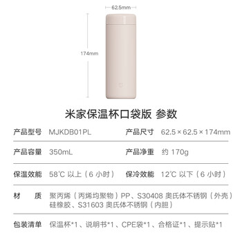 米家 保温杯 316不锈钢水杯 男女士杯子 大容量茶杯便携 350ml粉色