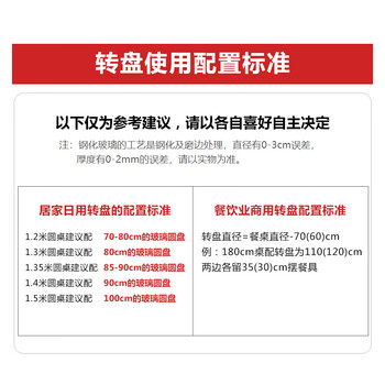 例:180cm桌配转盘为110(120)cm