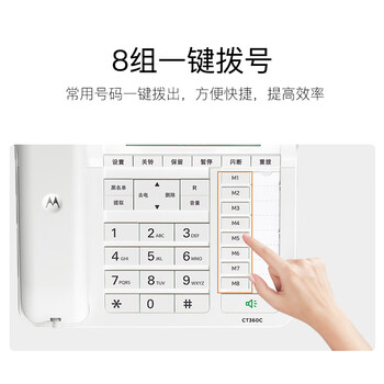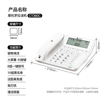 摩托罗拉(Motorola)轻奢电话机座机固定电话 4.2英寸大屏 5米远距离免提 钢琴烤漆 办公家用 CT360C(白色)
