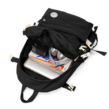 Landcase书包韩版小学生大容量双肩包女高中初中生校园双肩背包 1608黑色