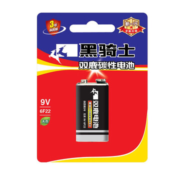 双鹿 黑骑士9V碳性电池1粒卡装 适用于万用表/烟雾探测器/玩具遥控器/话筒 6F22/叠层电池 1粒卡装