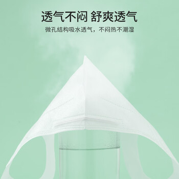 本产品由口罩体、口罩带和鼻夹组成。口罩体有三层:内层(无纺布)、中间层(熔喷布)、外层(无纺布)。鼻夹采用可弯折的可塑性材料制成,口罩带由氨纶弹性松紧织物或无纺布制成。该产品以非无菌状态提供,一次性使用。