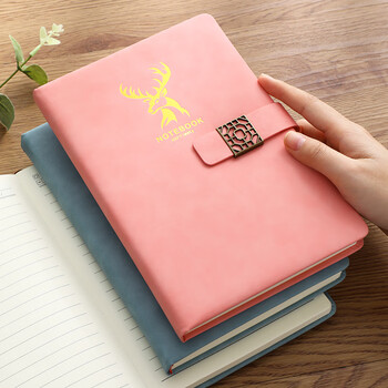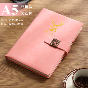 法拉蒙 笔记本本子A5皮面加厚本子记事本商务简约办公会议记录本笔记本子文具定制 A5文艺粉