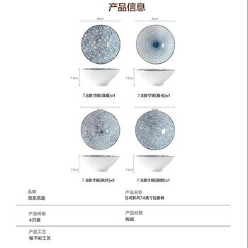 京东京造日式拉面碗家用陶瓷大号汤碗牛肉面碗泡面碗 7.8英寸拉面碗4个装