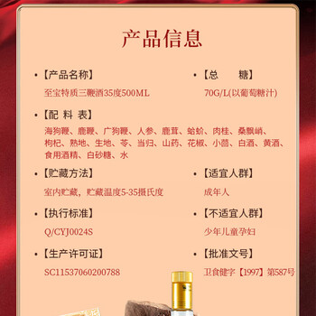 至宝特质三鞭酒中老年养生保健酒男35度精装方瓶送礼整箱35度500ml*6