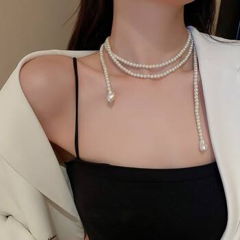 黛若珍珠多种戴法毛衣链项链颈链小众超长款叠戴秋冬多层