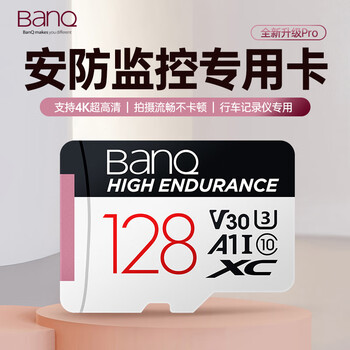 banq 128GB TF(MicroSD)存储卡 A1 U3 V30 4K 行车记录仪&安防监控专用内存卡 高度耐用