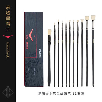 【全网低价】米娅(MIYA)黑骑士水粉笔11支装带包装外盒水粉丙烯油画联考艺考初学者画笔专用小笔型 速写 马克笔绘画