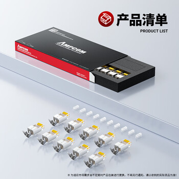 安普康AMPCOM六类带燕尾夹铜壳镀镍屏蔽水晶头 50U镀金 1.3孔径 10个装